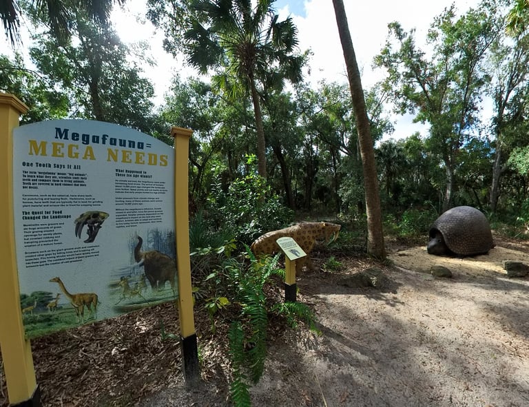 The Sams House at Pine Island Conservation Area on Merritt Island holds significant evidence of prehistoric life, spanning both ancient animal populations and early human inhabitants.