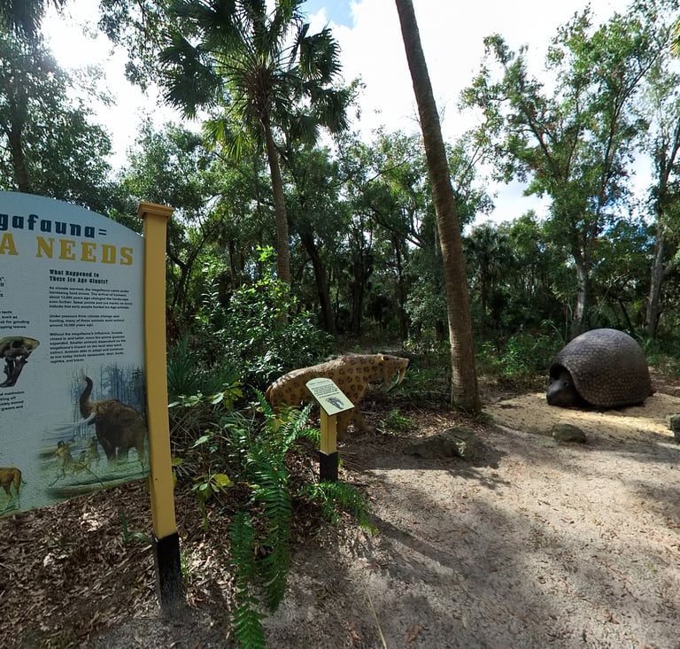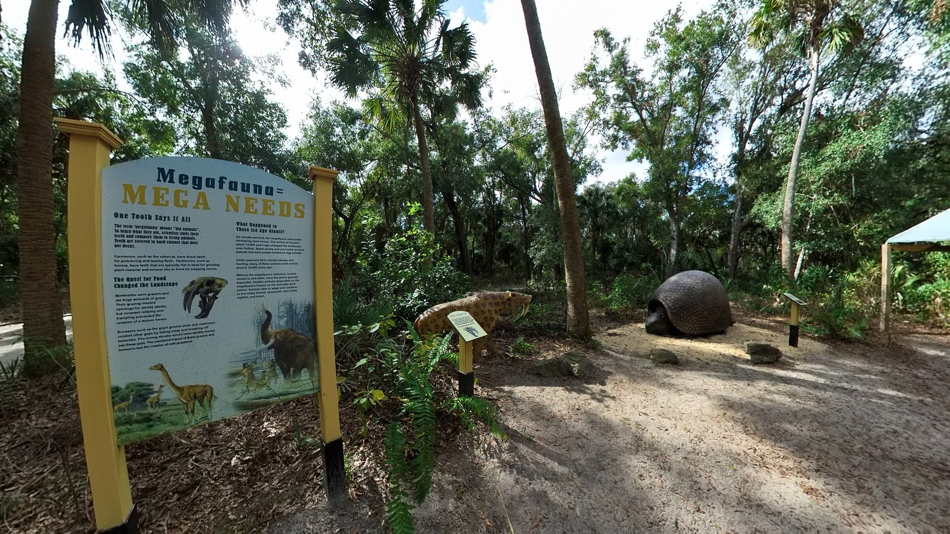 The Sams House at Pine Island Conservation Area on Merritt Island holds significant evidence of prehistoric life, spanning both ancient animal populations and early human inhabitants.